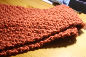 I have a few select items that I have made for myself that I adore. Tonight I just added to that collection — I made myself a scarf. It’s orange, it’s super soft — it’s delicious.
